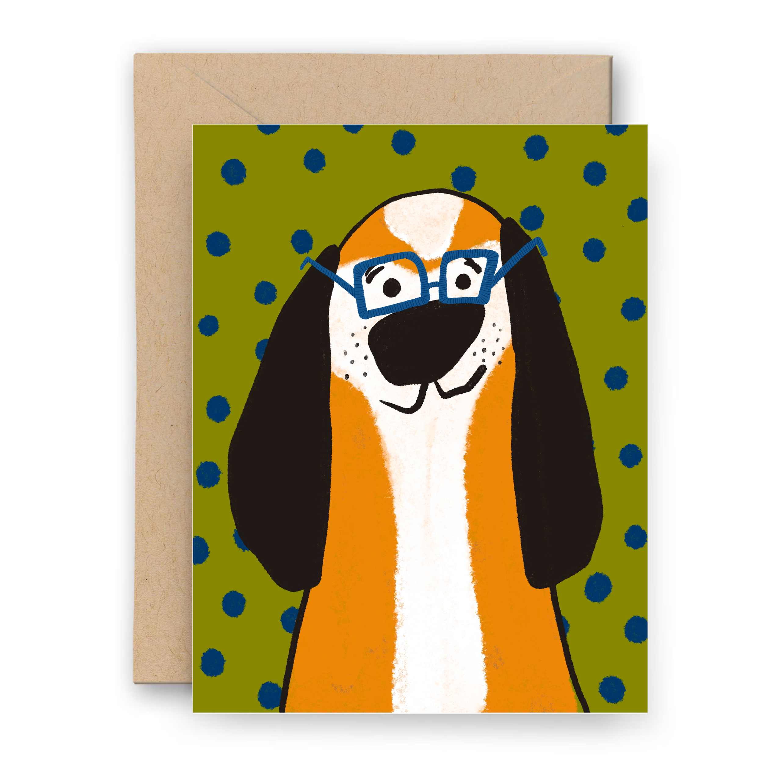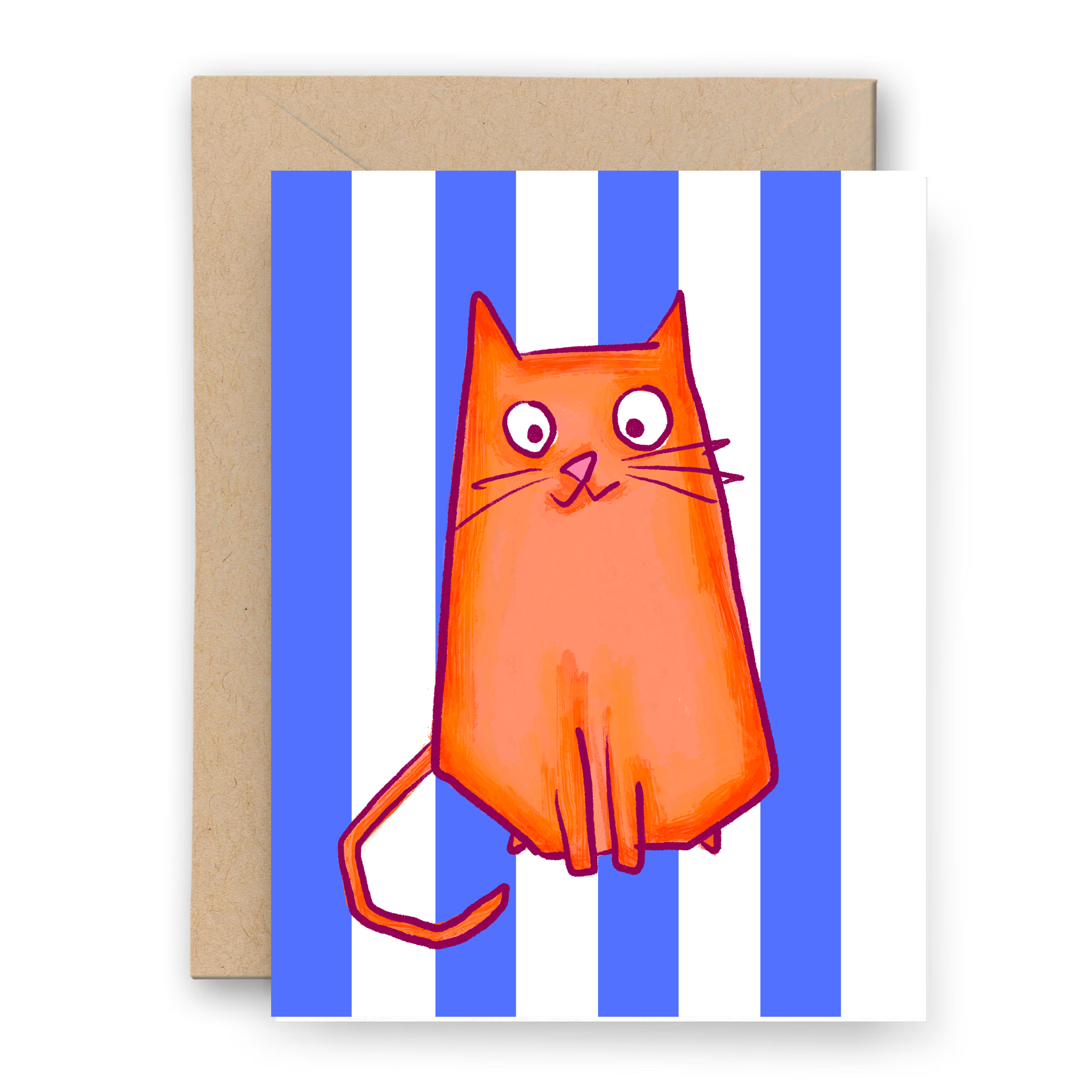 Terracotta pot with abstract blue, white, and brown painted design on a neutral background.